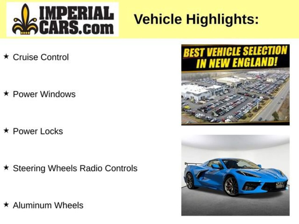 Elevate your driving experience with the exceptional 2023 Chevrolet Corvette Stingray 3LT. This stunning sports car combines exhilarating performance, cutting-edge technology, and refined luxury, making it the ultimate choice for the discerning automotive enthusiast.Indulge in the Corvette's impressive array of premium features, including: Navigation System Sunroof / Moonroof Blind Spot Monitor Cross Traffic Alert Apple CarPlay / Android Auto Power Leather Seats Backup Camera Bluetooth Cruise Control Power Windows Power Locks Steering Wheel Radio Controls Aluminum WheelsElevate your driving experience even further with the Corvette's impressive custom features, such as the 19 x 8.5 Front and 20 x 11 Rear 20-Spoke Tech Bronze Aluminum Wheels, Magnetic Selective Ride Control Suspension, and Performance Exhaust with Stainless-Steel Tips.The Corvette Stingray 3LT also comes equipped with the Preferred Equipment Group 3LT, which includes a Head-Up Display, Universal Home Remote, Electrical Theft Deterrent System, and much more. Enjoy the convenience of the Memory Driver & Passenger Convenience Package, as well as the premium touch of the Custom Leather Wrapped Interior Package.This exceptional Corvette has been meticulously cared for, with only 11,887 miles on the odometer. Certified by Chevrolet, this vehicle has undergone a rigorous inspection and comes with the peace of mind of a comprehensive warranty, ensuring you can drive with confidence.Unleash your passion for performance and luxury with the 2023 Chevrolet Corvette Stingray 3LT. Experience the thrill of the 6.2L V8 engine, paired with the precision of the 8-Speed Dual Clutch transmission and Rear-Wheel Drive. With an impressive 16 city and 24 highway MPG, this Corvette delivers both power and efficiency.Discover the ultimate in sports car excellence. Visit our showroom today to test drive the 2023 Chevrolet Corvette Stingray 3LT and make it your own. This exceptional vehicle won't be available for long, so don't miss your chance to own a true icon of American automotive engineering.