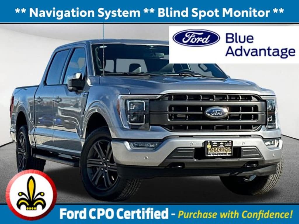 Navigation System, Blind Spot Monitor, Apple CarPlay / Android Auto, Lane Keeping Assistance, Adaptive Cruise Control, Cross Traffic Alert, Power Leather Seats, Heated Seats, Backup Camera, Bluetooth, Cruise Control, Power Windows, Power Locks, Steering Wheels Radio Controls, Aluminum Wheels, Running Boards / Side Steps, Towing Package, 4WD, Accent-Color Angular Step Bars, Body-Color Front & Rear Bumpers, Box Side Decals, Chrome Single-Tip Exhaust, Dark 2-Bar & 1 Minor Bar Style Grille, GVWR: 6,600 lbs Payload Package, Lariat Sport Appearance Package, Navigation system: Connected Navigation. Certified. Iconic Silver Metallic 2023 Ford F-150 Lariat 4D SuperCrew Lariat 4WD 10-Speed Automatic