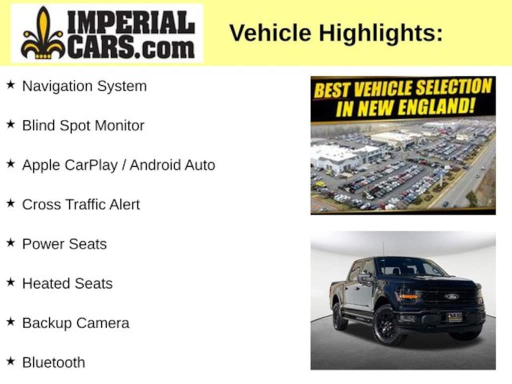 Navigation System, Blind Spot Monitor, Apple CarPlay / Android Auto, Cross Traffic Alert, Power Seats, Heated Seats, Backup Camera, Bluetooth, Cruise Control, Power Windows, Power Locks, Steering Wheels Radio Controls, Aluminum Wheels, Running Boards / Side Steps, 4WD, 360 Degree Camera, 400W Cab & Bed Outlets, 6" Angular Bright Anodized Step Bar, 6" Black Running Boards, Adaptive Cruise Control w/Stop & Go, Auto-Dimming Rear-View Mirror, Black Exterior Badging, Black Grille, Black Painted Grille w/Chrome Center Bar, Body-Color Front & Rear Bumpers, Chrome Door & Tailgate Handles, Chrome Single-Tip Exhaust, Cloth 40/Console/40 Front Seats, Connected Navigation, Dark Interior Appliques, Driver State Detection, Dual-Zone Electronic Automatic Temperature Control, Equipment Group 302A Mid, Evasive Steering Assist, Floor Shifter, Ford Co-Pilot360 Assist 2.0, Front Parking Sensors, Gray Box Side Decal, Heated Front Seats, Intelligent Access w/Push Button Start, Power Glass Heated Sideview Mirrors, Power-Sliding Rear Window, Remote Start System w/Remote Tailgate Release, Towing Technology, Unique Sport Cloth 40/Console/40 Front-Seats, Wheels: 18" Gloss Black, Wrapped Steering Wheel, XLT Black Appearance Package. Certified. Agate Black Metallic 2025 Ford F-150 XLT 4D SuperCrew XLT 4WD 10-Speed Automatic