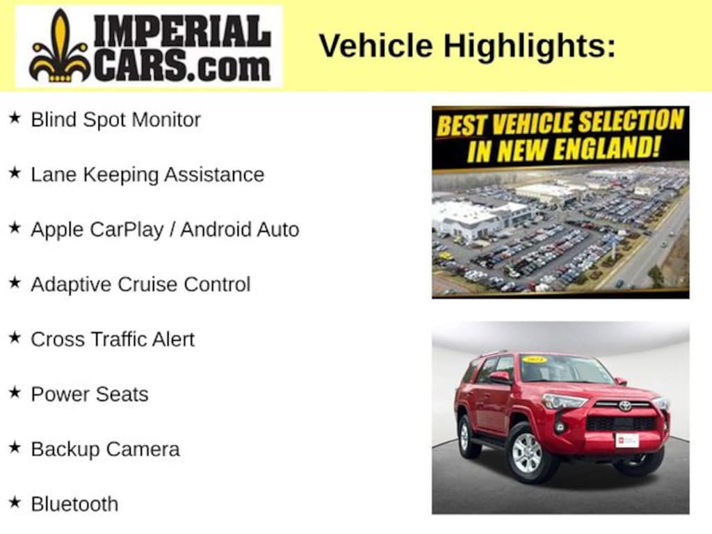 Blind Spot Monitor, Lane Keeping Assistance, Apple CarPlay / Android Auto, Adaptive Cruise Control, Cross Traffic Alert, Power Seats, Backup Camera, Bluetooth, ** Toyota CPO Certified **, Cruise Control, Power Windows, Power Locks, Steering Wheel Radio Controls, Aluminum Wheels, Luggage Rack, Running Boards, 4WD, Black/Graphite Cloth. Certified. Barcelona Red Metallic 2024 Toyota 4Runner SR5 SR5 4D Sport Utility 4.0L V6 DOHC 24V 4WD 5-Speed with ECT