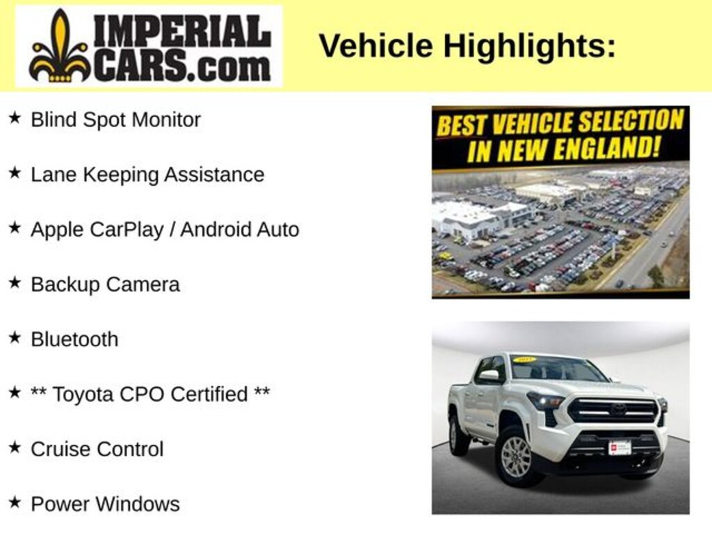 Blind Spot Monitor, Lane Keeping Assistance, Apple CarPlay / Android Auto, Backup Camera, Bluetooth, ** Toyota CPO Certified **, Cruise Control, Power Windows, Power Locks, Steering Wheel Radio Controls, Aluminum Wheels, 4WD. Certified. Ice Cap 2025 Toyota Tacoma SR5 SR5 4D Double Cab 2.4L 4-Cylinder 4WD 8-Speed Automatic