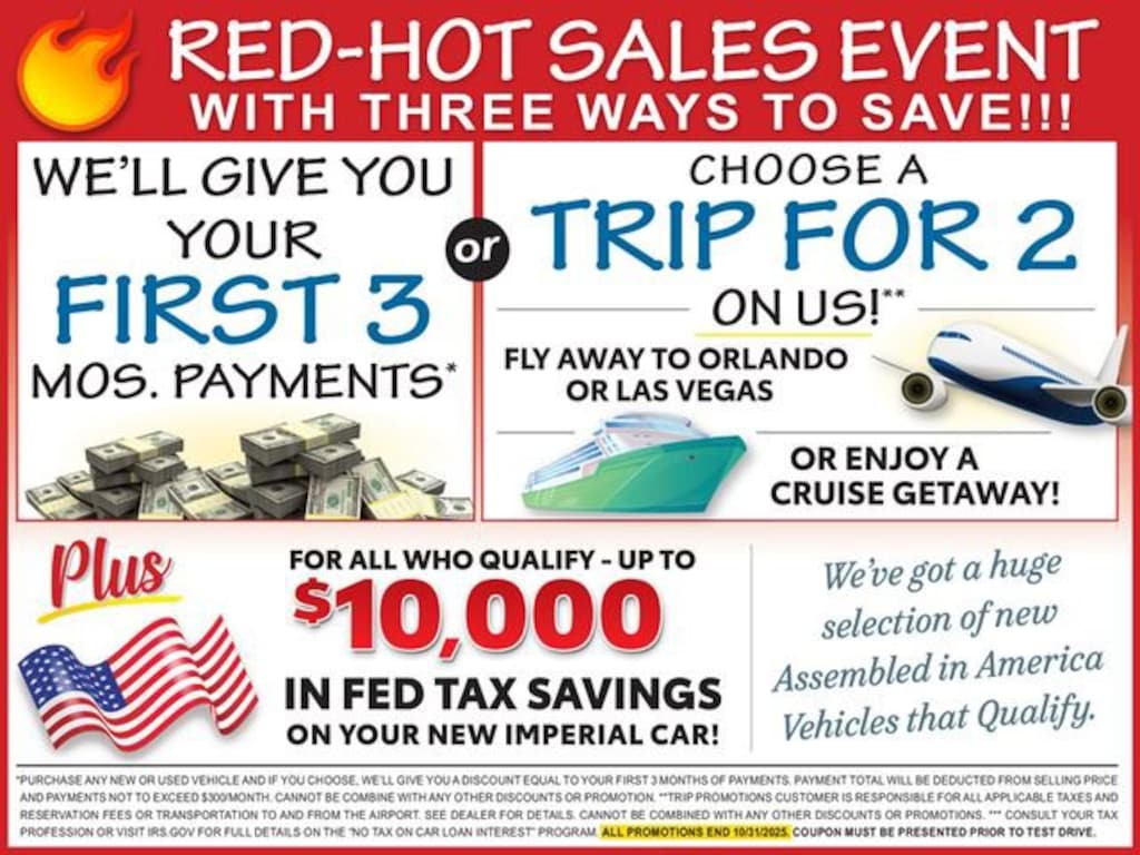 The Buy For Price reflects all applicable manufacturer rebates and/or incentives (not all will qualify) and is based on retail purchase with additional dealer discounts including a $1,000 Imperial Trade Assistance Bonus for qualifying retailable trades with less than 10 years of use from the original in service date. To Qualify for $500 Below Employee Pricing Offer you must qualify for First Responder or Military Rebates. All Rebates to Dealer.Lease, business and fleet acquisitions may result in a different pricing and rebate structure. Price does not include tax, title, registration, and documentation fee or acquisition fee. All incentives and rebates go to the dealer. Due to the current unprecedented market conditions, availability of some vehicles is severely restricted.Acquisition and/or replenishment of these vehicles may come at a premium price. Accordingly, some vehicles may be sold at a price higher than MSRP. Vehicle must be paid in full and take same day delivery from dealer stock. No wholesalers or dealers. Call or email our phone and internet team for the most current rebate information and Imperial discounts. Our price online is for our market area only. Price cannot be combined with any other discounts or promotions. Not responsible for typographical or pricing errors. May include vehicle demonstrators. Stock images may be used and may not represent the actual vehicle.