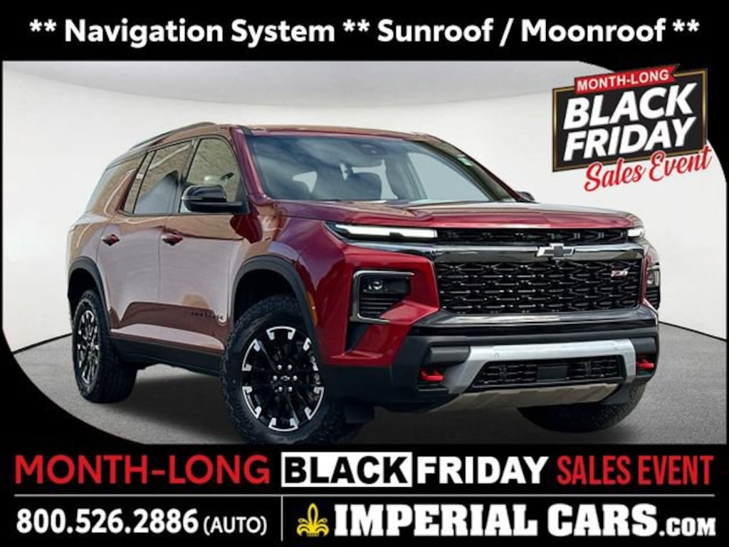 Navigation System, Sunroof / Moonroof, Blind Spot Monitor, Lane Keeping Assistance, Adaptive Cruise Control, Cross Traffic Alert, Parking Assistance, Apple CarPlay / Android Auto, Power Seats, Heated Seats, Backup Camera, Bluetooth, Remote Engine Starter, Cruise Control, Power Windows, Power Locks, Steering Wheels Radio Controls, Aluminum Wheels, AWD, 1st & 2nd Row All-Weather Floor Liners (LPO), 3 Years of Super Cruise/Digital Services by OnStar, 3rd Row All-Weather Floor Liner (LPO), Bose Premium 12-Speaker Audio System Feature, Driver Attention Assist, Driver Confidence Package, Enhanced Automatic Parking Assist, Enhanced Driving Package, Floor Liner Package (LPO), HD Surround Vision, Navigation System, Power Outlet, Preferred Equipment Group 2Z7, Rear Camera Mirror, Rear Pedestrian Alert, Super Cruise, Traffic Sign Recognition. Radiant Red Tintcoat 2025 Chevrolet Traverse Z71 4D Sport Utility Z71 AWD 8-Speed Automatic