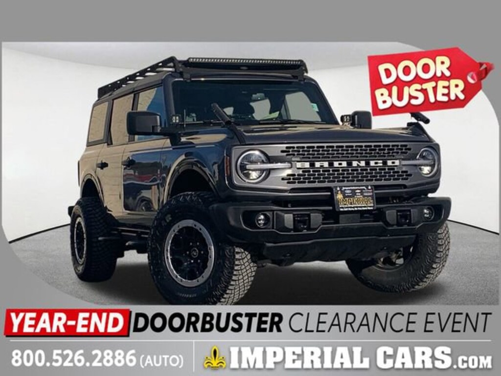 Recent Arrival! Cruise Control, Power Windows, Power Locks, Steering Wheels Radio Controls, Aluminum Wheels. Gray 2022 Ford Bronco 4D Sport Utility 4WD 10-Speed AutomaticAwards:* NACTOY 2022 North American Utility of the Year2.7L EcoBoost V6MORE ABOUT US: Imperial Cars Purchase With Confidence: 1) Free Car Fax Vehicle History Report available for all our vehicles online. 2) Our vehicles are Imperial Certified and go through a rigorous Multi-Point vehicle inspection. 3) Bottom line pricing. 4) 5-Day or 200 Mile Vehicle Exchange Program for your total confidence. If you are not happy with it bring it back within 7 days or 200 miles and we'll give you a credit of your full purchase price toward the purchase of another vehicle. (Excludes Renewed for You vehicles.)Please be aware that the price listed for the vehicle does not include tax, title, registration, documentation fee, or any other applicable fees. However, it does include a trade-in assistance bonus of $1,000 for qualifying retailable trades with less than 10 years of use from the original in-service date. To be eligible for the advertised promotional price, you must pay in full and take delivery of the vehicle from dealer stock on the same day. For the most up-to-date information and Imperial discounts, please call or email our phone and internet team. Please note that the price cannot be combined with any other discounts or promotions and is subject to change based on the market value at any time without notice. To receive the internet special discount, please mention the promo code INTERNET1. While we strive to provide reliable information, please note that the dealer is not responsible for any misprints involving the price and/or description of any vehicle offered for sale. It is your sole responsibility to inspect and verify such information before making a purchase. We want to be transparent in our dealings, and to that end, you can call 800-526-AUTO (2886) to receive your personalized Buy-For-Price. Lastly, please note that we do not sell to wholesalers or dealers, and some of our pre-owned vehicles may be subject to unrepaired safety recalls. To check if any vehicle has unrepaired recalls, you can look up the vehicle's VIN at https://www.nhtsa.gov/recalls.