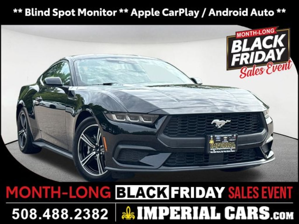 Blind Spot Monitor, Apple CarPlay / Android Auto, Collision Avoidance Assistance, Power Seats, Heated Seats, Backup Camera, Bluetooth, Cruise Control, Power Windows, Power Locks, Steering Wheel Radio Controls, Aluminum Wheels. Shadow Black 2024 Ford Mustang EcoBoost EcoBoost 2D Coupe EcoBoost 2.3L I4 GTDi DOHC Turbocharged VCT RWD 10-Speed Automatic