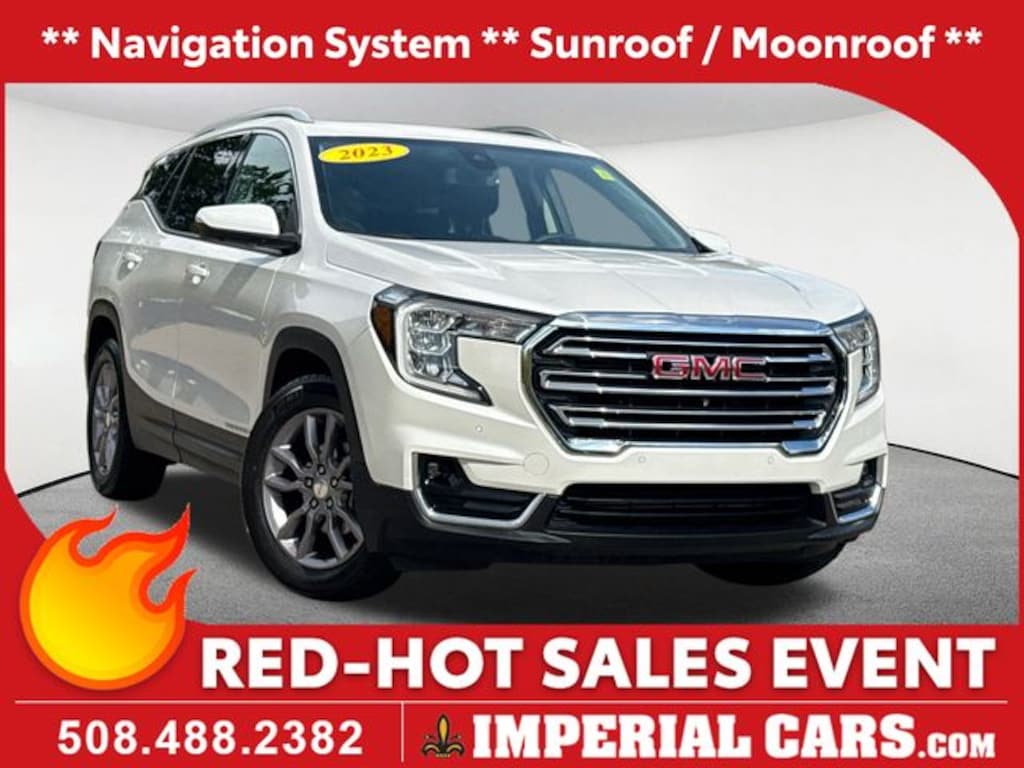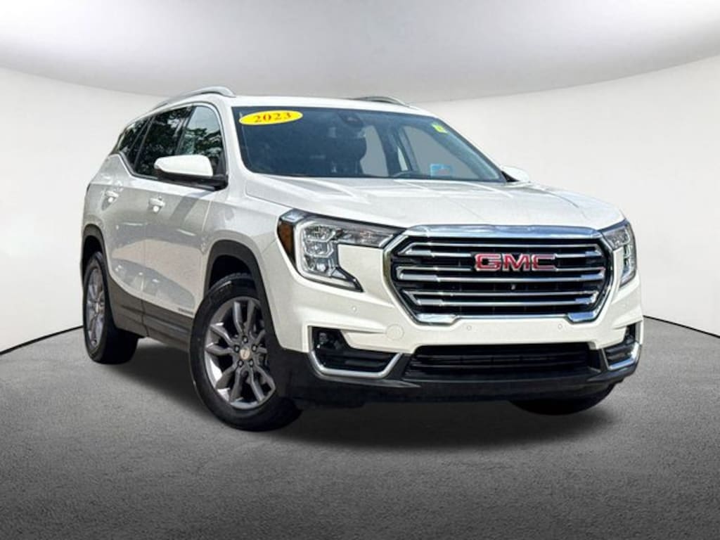 Navigation System, Sunroof / Moonroof, Blind Spot Monitor, Lane Keeping Assistance, Apple CarPlay / Android Auto, Adaptive Cruise Control, Cross Traffic Alert, Power Leather Seats, Heated Seats, Backup Camera, Bluetooth, Cruise Control, Power Windows, Power Locks, Steering Wheel Radio Controls, Aluminum Wheels, Luggage Rack, Adaptive Cruise Control, Front & Rear Park Assist, HD Surround Vision, Head-Up Display, Infotainment Package II, Lane Change Alert w/Side Blind Zone Alert, Preferred Equipment Group 4SA, Premium 7-Speaker Bose Sound System w/Amplifier, Radio: GMC Infotainment Audio System w/Navigation, Rear Cross-Traffic Alert, Rear Park Assist, Safety Alert Seat, Side Blind Zone & Rear Cross Traffic, SiriusXM Radio, Tech Package, Terrain Pro Safety Plus. Summit White 2023 GMC Terrain SLT SLT 4D Sport Utility 1.5L DOHC FWD 9-Speed Automatic