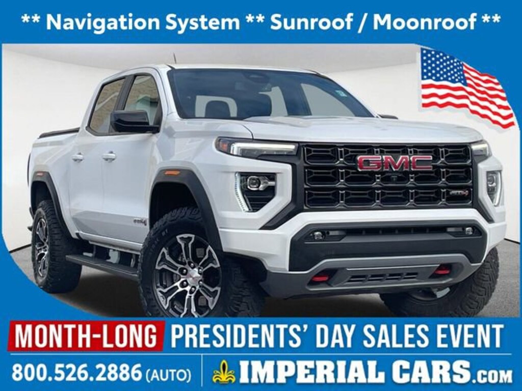 Navigation System, Sunroof / Moonroof, Blind Spot Monitor, Lane Keeping Assistance, Adaptive Cruise Control, Cross Traffic Alert, Apple CarPlay / Android Auto, Power Leather Seats, Heated Seats, Backup Camera, Bluetooth, Cruise Control, Power Windows, Power Locks, Steering Wheels Radio Controls, Aluminum Wheels, Running Boards / Side Steps, 4WD, 120-Volt Bed Mounted Power Outlet, 2 Rear USB Ports in Center Console (Charge-Only), 8-Way Power Driver Seat Adjuster, Adaptive Cruise Control, Automatic Emergency Braking, Automatic Locking Rear Differential, Canyon Pro Safety, Canyon Safety Plus Package, Driver & Front Passenger Illuminated Visors, Dual-Zone Automatic Air Conditioning, EZ-Lift & Lower Tailgate, Following Distance Indicator, Forward Collision Alert, Front LED Fog Lamps, Front Pedestrian & Bicyclist Braking, HD Surround Vision, Heated Driver & Front Passenger Seats, Heated Power-Adjustable Outside Mirrors, Inside Rear-View Auto-Dimming Mirror, Integrated Trailer Brake Controller, IntelliBeam Automatic High Beam On/Off, Interior Overhead Courtesy Light w/Dual Reading Lamp, Lane Keep Assist w/Lane Departure Warning, Manual Rear-Sliding Window, MultiStow Tailgate, Navigation System, Power Driver Lumbar Control Seat Adjuster, Preferred Equipment Group 4SG, ProGrade Trailering System, Rear Cross Traffic Braking, Rear of Console 120-Volt Power Outlet, Rear Pedestrian Alert, Rear-Window Electric Defogger, Remote Vehicle Starter System, Tailgate Keyed Cylinder Lock, Technology Package, Tilt & Telescopic Manual Steering Column, Trailering App System, Trailering Package, Ultrasonic Rear Park Assist. Summit White 2024 GMC Canyon AT4 4D Crew Cab AT4 4WD 8-Speed Automatic