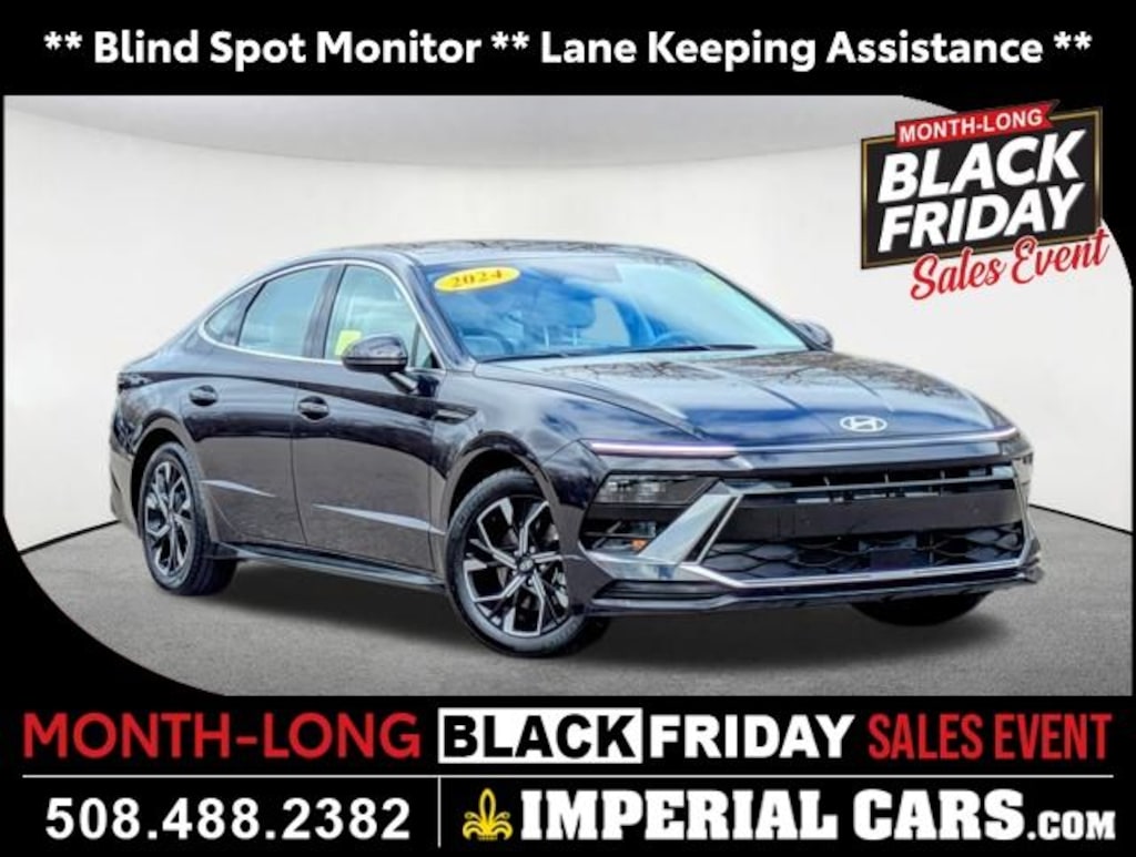 Blind Spot Monitor, Lane Keeping Assistance, Apple CarPlay / Android Auto, Adaptive Cruise Control, Collision Avoidance Assistance, Cross Traffic Alert, Power Seats, Heated Seats, Backup Camera, Bluetooth, Remote Engine Starter, Cruise Control, Power Windows, Power Locks, Steering Wheel Radio Controls, Aluminum Wheels, Dark Gray Cloth, Option Group 01. Carbon Blue 2024 Hyundai Sonata SEL SEL 4D Sedan I4 FWD 8-Speed Automatic