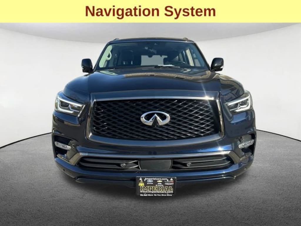 Boasting a striking Blue exterior, this QX80 is equipped with an impressive array of premium features, including: - Aluminum Wheels - Apple CarPlay / Android Auto - Backup Camera - Bluetooth - Cruise Control - Heated Seats - Luggage Rack - Navigation System - Power Leather Seats - Power Locks - Power Windows - Steering Wheels Radio Controls - Sunroof / Moonroof - Third Row Seats. Additionally, it comes equipped with the All-Season Package, Radiant Illuminated Kick Plates, and Welcome Lighting, offering unrivaled convenience and year-round versatility.