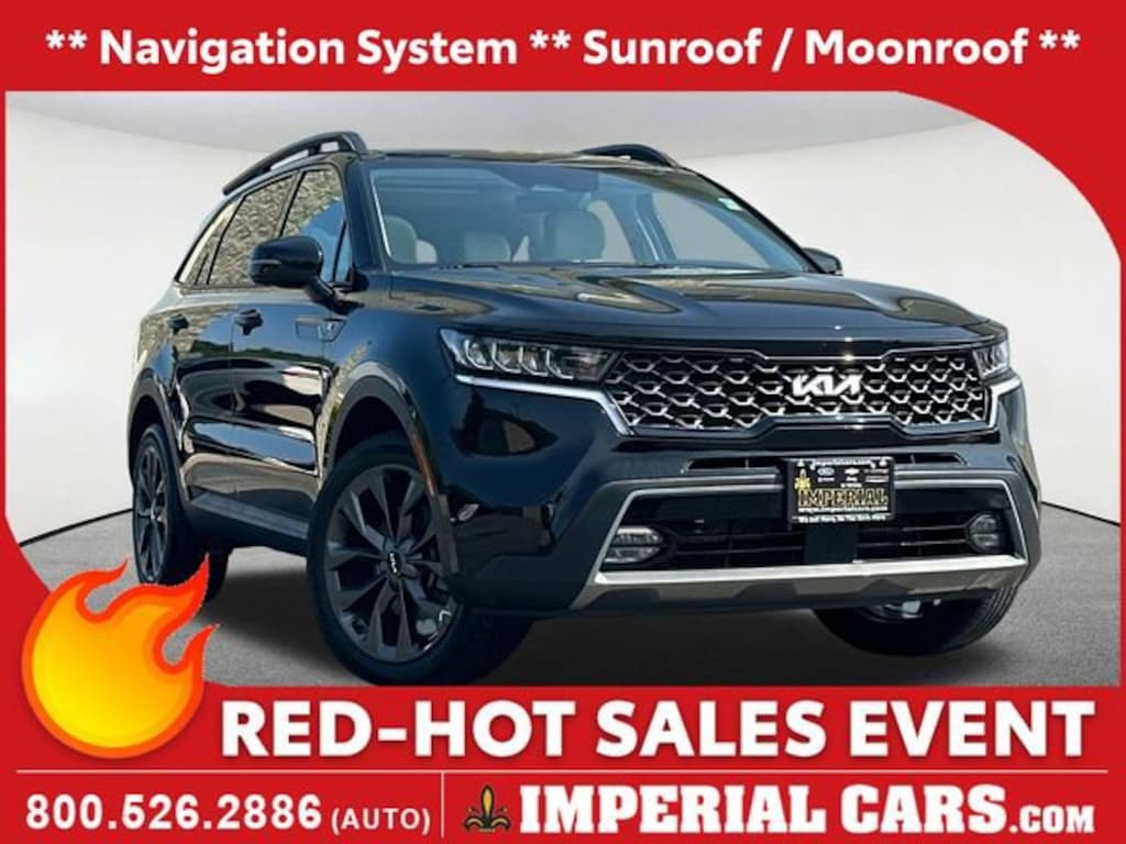 Navigation System, Sunroof / Moonroof, Blind Spot Monitor, Apple CarPlay / Android Auto, Backup Camera, Bluetooth, Cruise Control, Power Windows, Power Locks, Steering Wheels Radio Controls, Aluminum Wheels, Luggage Rack, Third Row Seats, AWD, Navigation System. Ebony Black 2022 Kia Sorento X-Line EX 4D Sport Utility X-Line EX AWD 8-Speed DCT