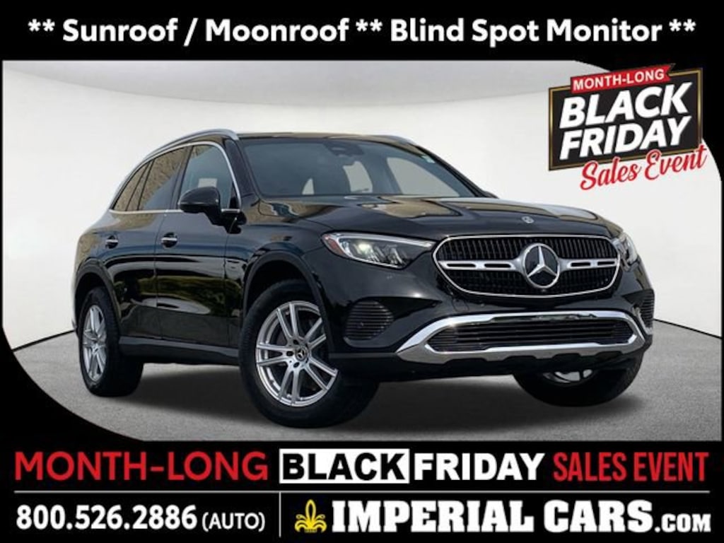 Sunroof / Moonroof, Blind Spot Monitor, Cross Traffic Alert, Parking Assistance, Apple CarPlay / Android Auto, Power Seats, Backup Camera, Bluetooth, Cruise Control, Power Windows, Power Locks, Steering Wheels Radio Controls, Aluminum Wheels, Luggage Rack. Black 2025 Mercedes-Benz GLC 300 4MATIC® 4D Sport Utility GLC 300 4MATIC® 4MATIC® 9-Speed Automatic