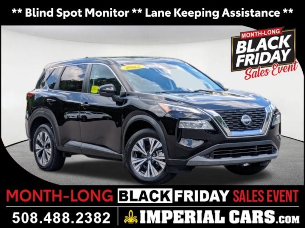 Blind Spot Monitor, Lane Keeping Assistance, Apple CarPlay / Android Auto, Adaptive Cruise Control, Cross Traffic Alert, Power Seats, Heated Seats, Backup Camera, Bluetooth, Cruise Control, Power Windows, Power Locks, Steering Wheel Radio Controls, Aluminum Wheels, Luggage Rack, AWD. Super Black 2022 Nissan Rogue SV SV 4D Sport Utility 1.5L I3 Turbocharged DOHC 12V LEV3-ULEV50 201hp AWD CVT with Xtronic